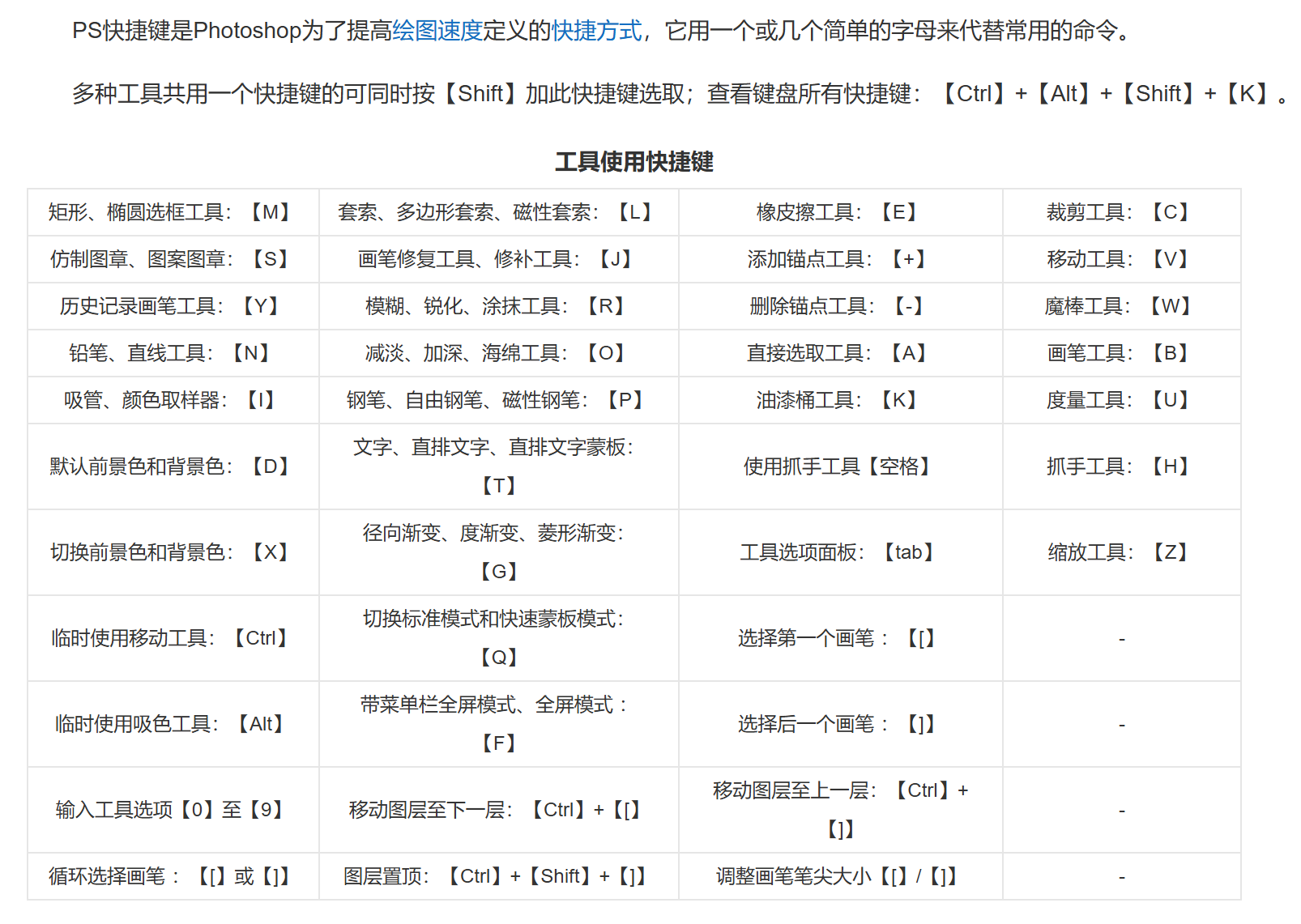 PS 快捷键¶