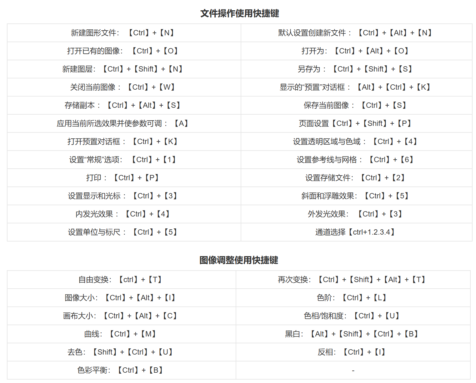 | Ctrl + K | 打开首选项 | Ctrl + E | 合并图层 |