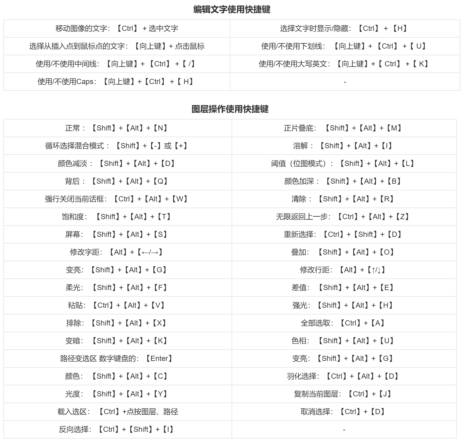 | Ctrl + J | 拷贝 | Ctrl + T | 缩放、移动图片/文字[+Shift -> 变扁] |